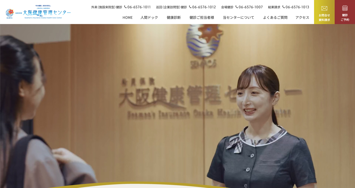 一般財団法人 船員保険会様が、大阪市に開設している健診センターの総合サイトを制作させていただきました。競合の多いマーケットで、差別化のためにモデルを起用したブランディング動画を作成。UI/UXの向上とともに、主要検索キーワードで上位を取っていくようSEO、LLMOおよびCV(コンバージョン)ライティングを施し、新規顧客獲得のためのパワーを高めました。